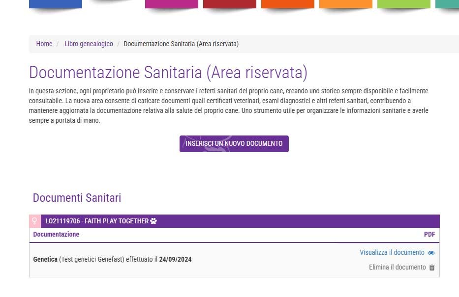 Una volta caricati, i documenti diventano visibili a chiunque consulti il profilo di quel cane nel Libro Genealogico pubblico.