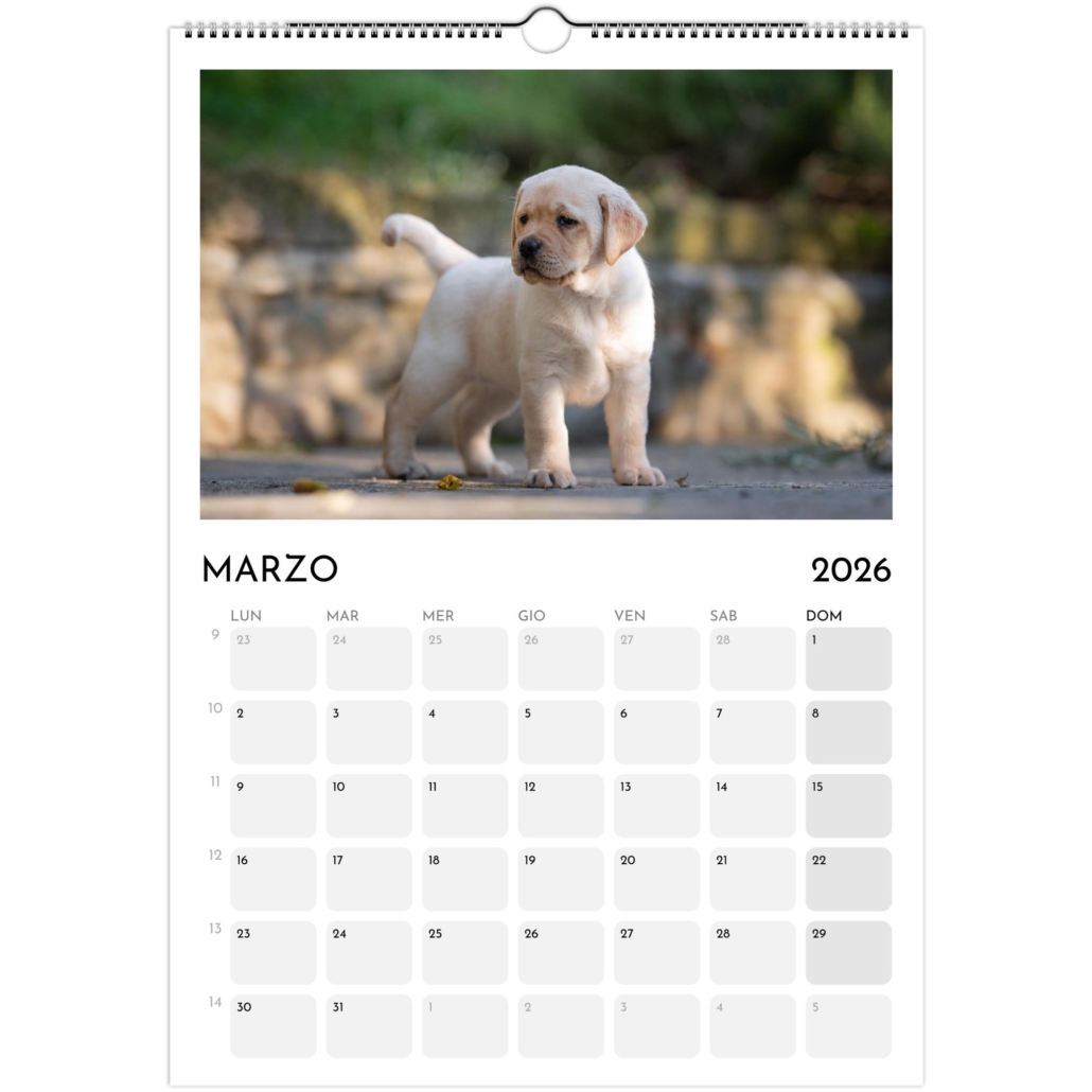 Il calendario è stampato su carta certificata FSC con colori vividi e alta qualità, ideale per la cucina, l’ufficio o come regalo perfetto per chi ama davvero questa razza.